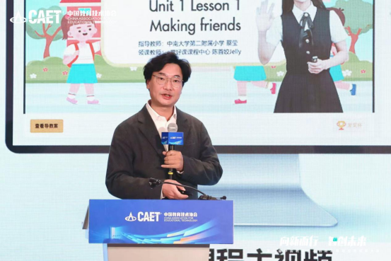 深圳市云端学校校长龚卫东做《面向未来的云端学校建设实践》为题的主题演讲与创新场景展示,分享云端学校在教学评研管方面的实践成效。云端学校以技术为支撑、实体校园为牵引、实际需求为驱动,创新构建“1+N”云端共同体,不仅实现了优质教育资源的规模化辐射,更有效带动共同体学校协同发展,打破了区域教育资源不均衡壁垒。在具体实践中,学校打造常态化、全学科、大场域直播互动教学;组织共同体教师同备同研同教;推行数字化全过程评价,为教育数字化转型开辟全新路径。龚校长提到,学校计划在中国教育技术协会下成立云端学校专委会。未来将依托专委会平台,推动“云端模式”在更多区域复制,为教育强国建设贡献力量。