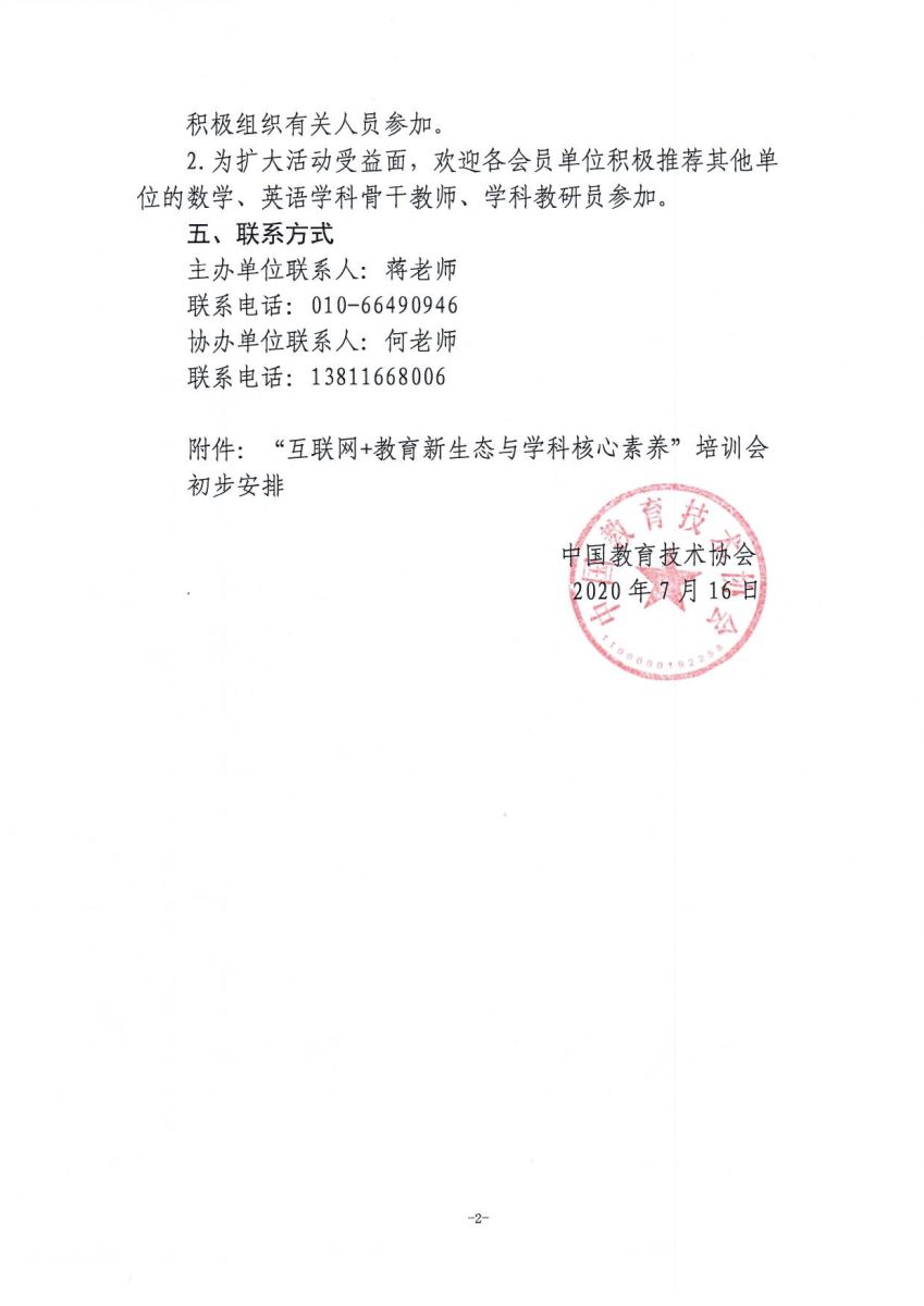 中国教育技术协会关于举办“互联网+教育新生态与学科核心素养”培训会的通知