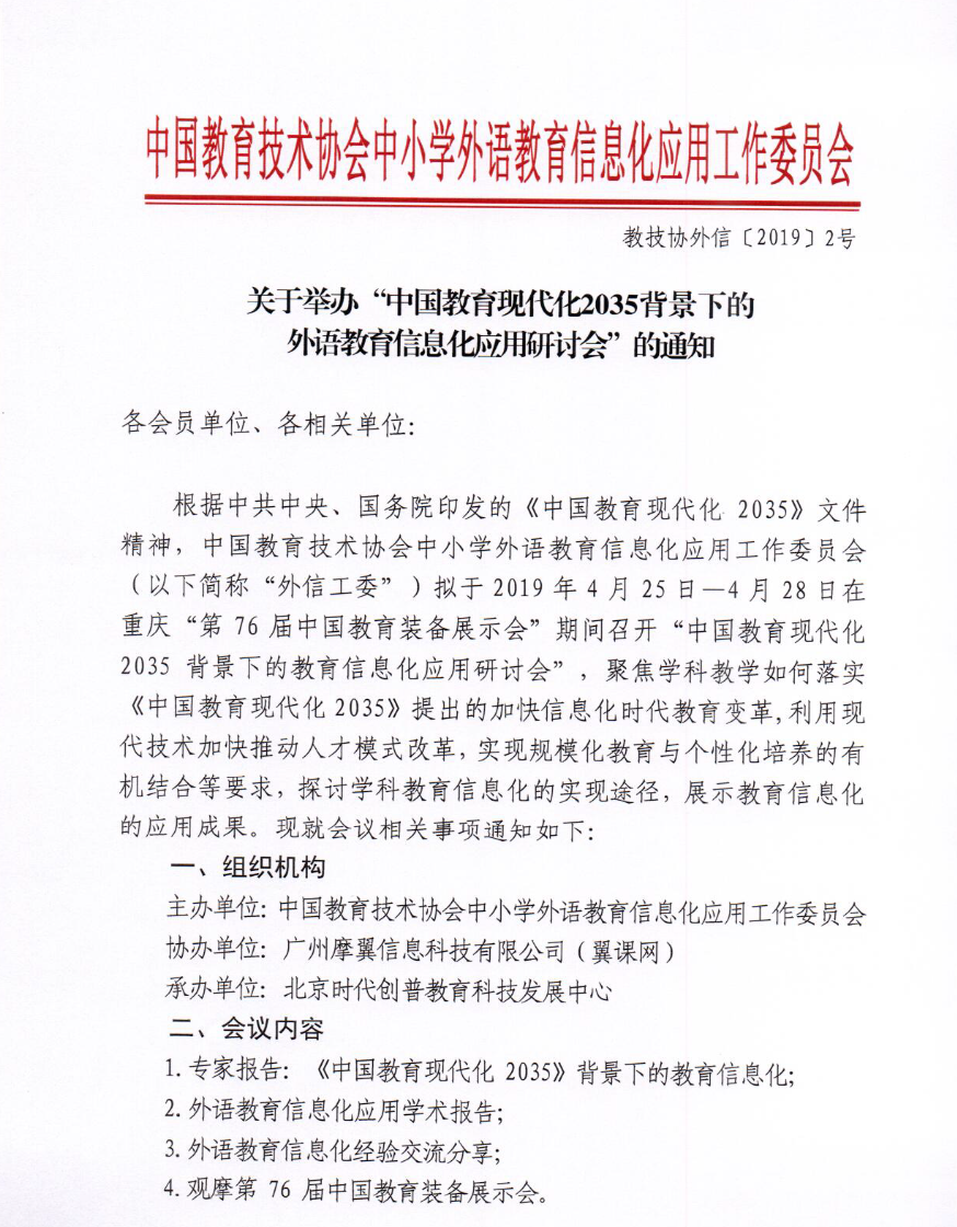 关于举办“中国教育现代化2035背景下的外语教育信息化应用研讨会”的通知