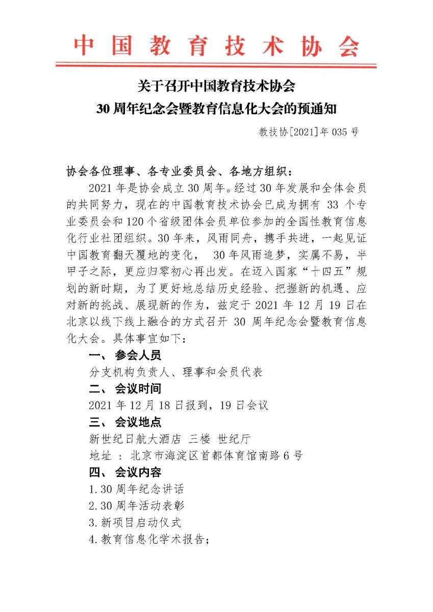 附件:关于召开中国教育技术协会30周年纪念会暨教育信息化大会的预通知.docx
