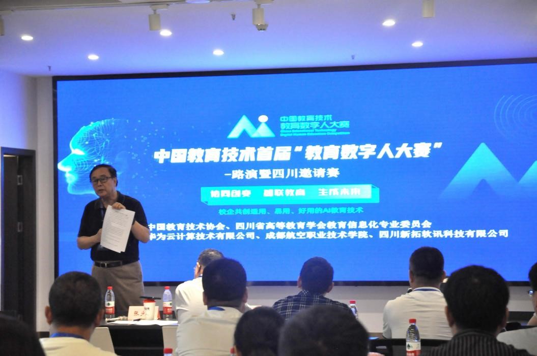 首届“教育数字人大赛”由中国教育技术协会发起,本次赛前路演暨四川邀请赛得到四川省高等教育学会教育信息化专业委员会的大力支持,华为云、成都航职院、四川新拓等校企的精心承办。