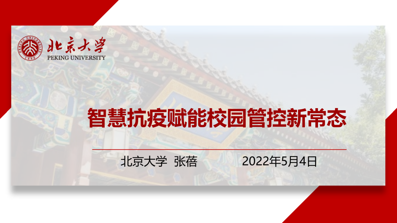 张蓓老师以《智慧抗疫赋能校园管控新常态》为题,从北京大学实践出发介绍了信息化支持下的校园疫情防控业务,包括校园管控、全员核酸检测、防御溯源等,详细介绍了为支持这些业务所开展的系统开发、数据治理等工作,最后在总结中强调信息系统在实战中完善,信息化队伍在实战中成长,数据治理要行而不辍,未来可期。