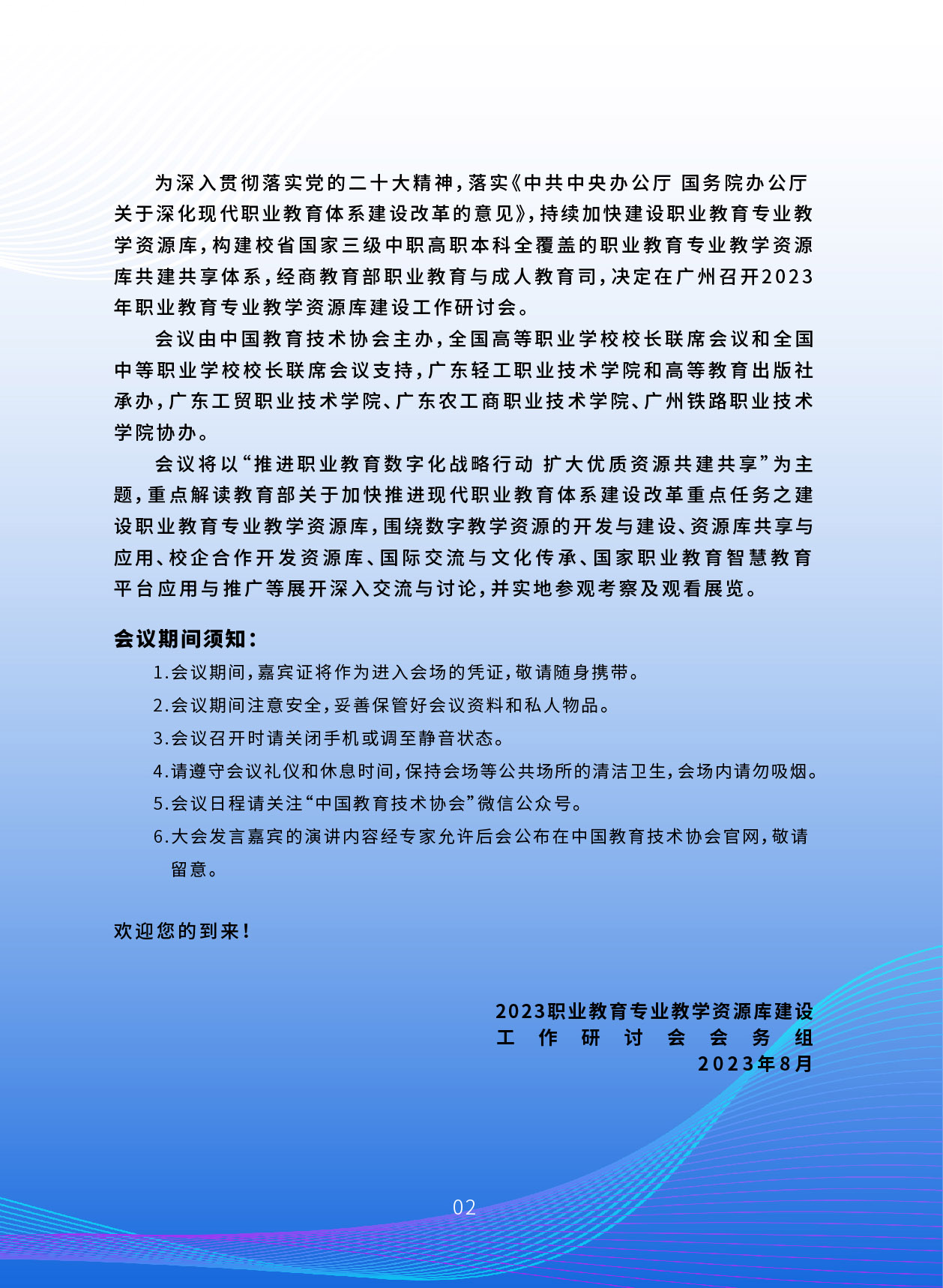 2023年职业教育专业教学资源库建设工作研讨会·会议须知