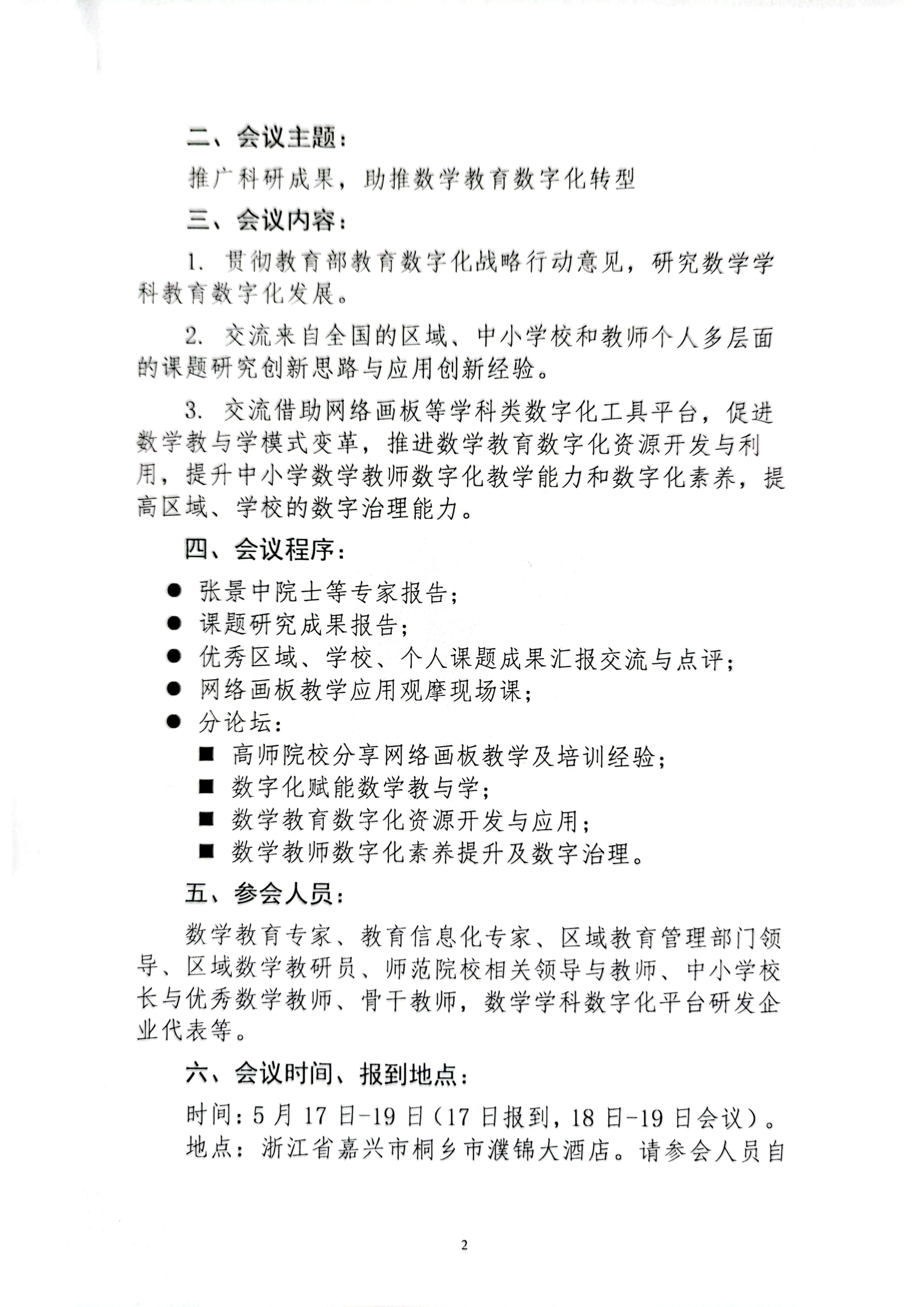 教育部教师工作司委托课题《中小学数学教师信息化教学能力显著提升的研究与实践》成果推广暨助推数学教育数字化研讨会通知