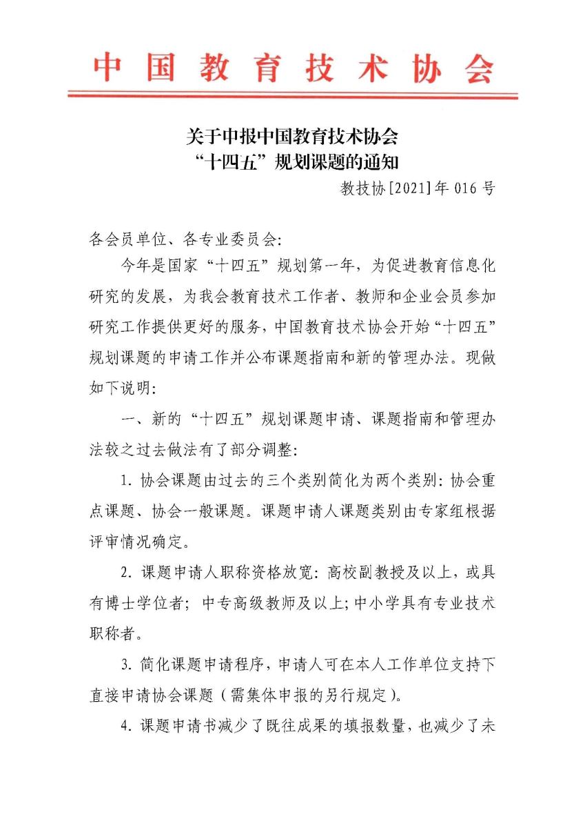附件一:中国教育技术协会“十四五”规划课题申请书