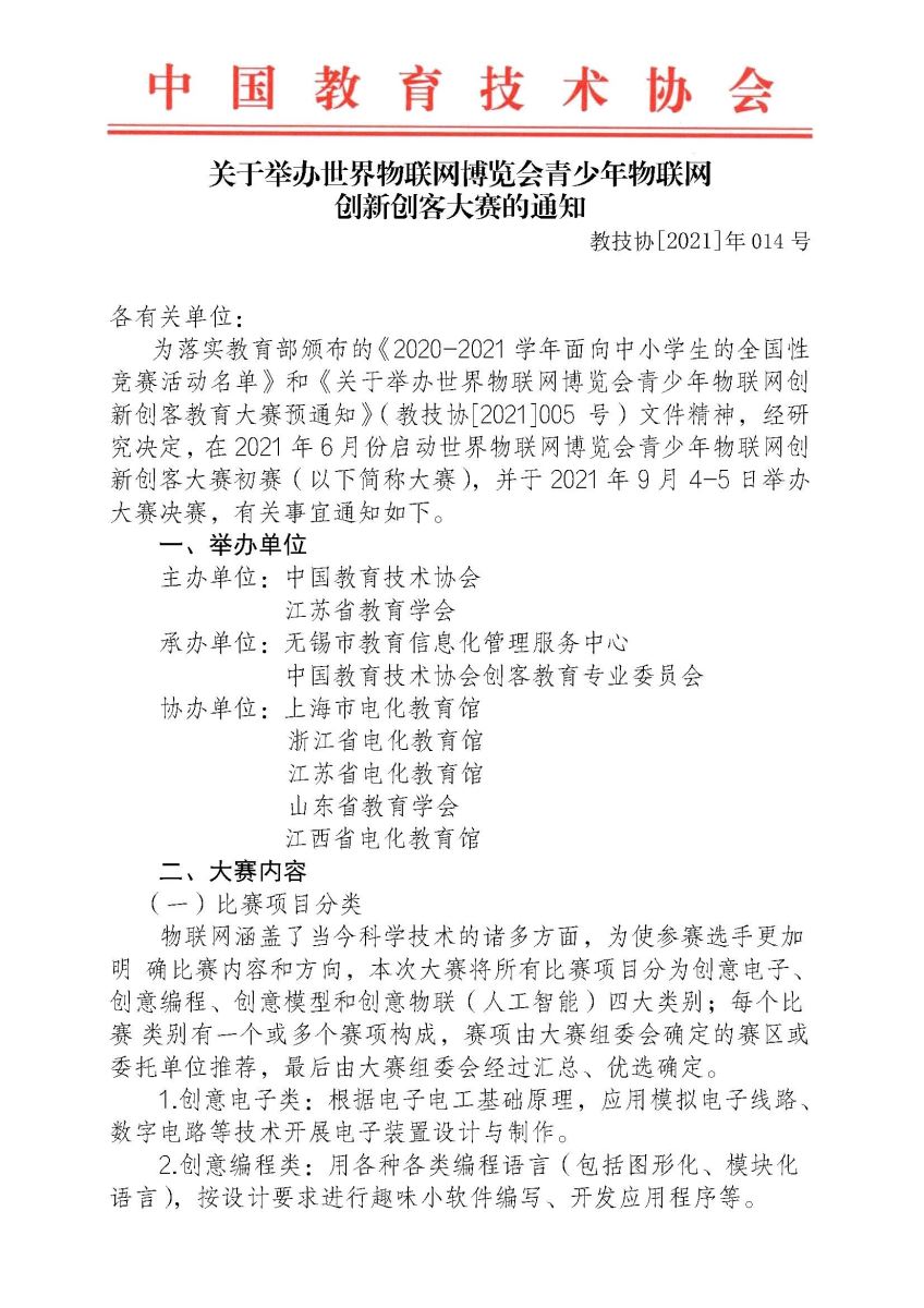 关于举办世界物联网博览会青少年物联网创新创客大赛的通知